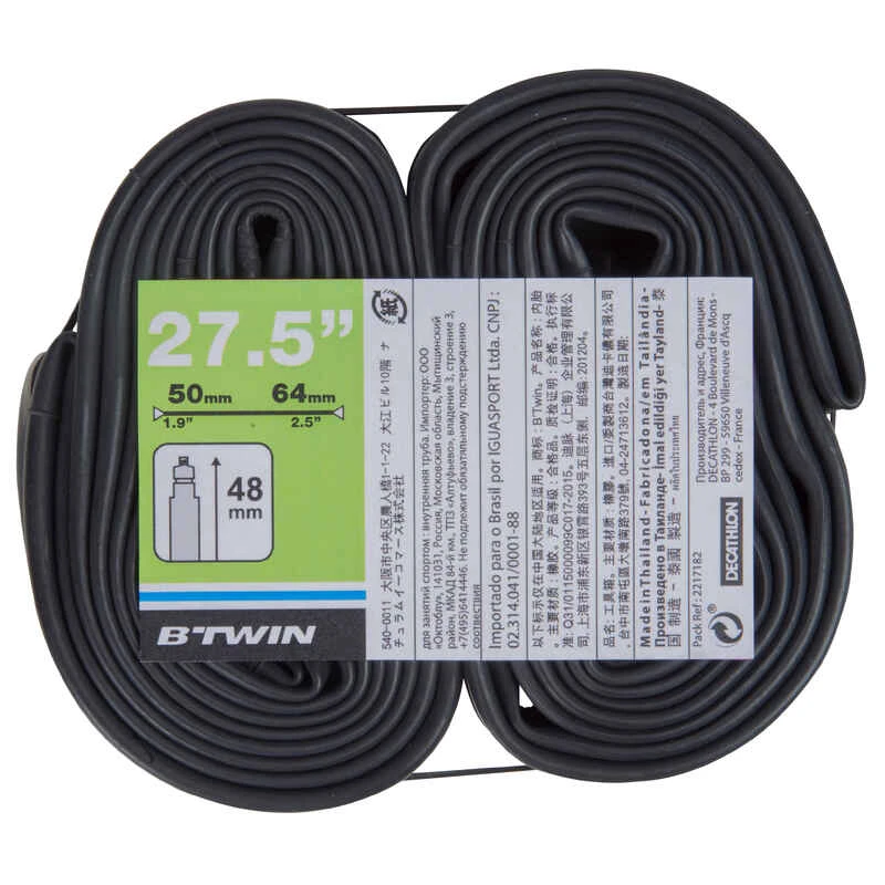 BTWIN LOT DE 2 CHAMBRES A AIR POUR PNEU DE 27,5 POUCES SECTION 1,9 A 2,5 VALVE PRESTA