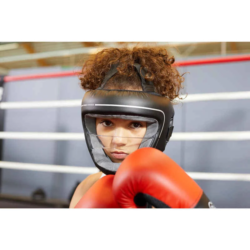 L’enfant pratiquant de boxe souhaitant se protéger intégralement le visage lors de ses entraînements.
