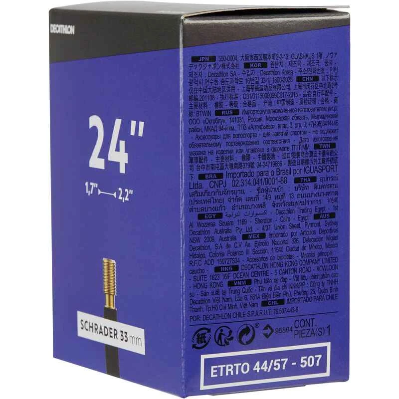 Cette chambre à air conviendra pour votre pneu de diamètre 24″ pouces, de section 1,70 à 2,20 avec valve Schrader 33 mm.