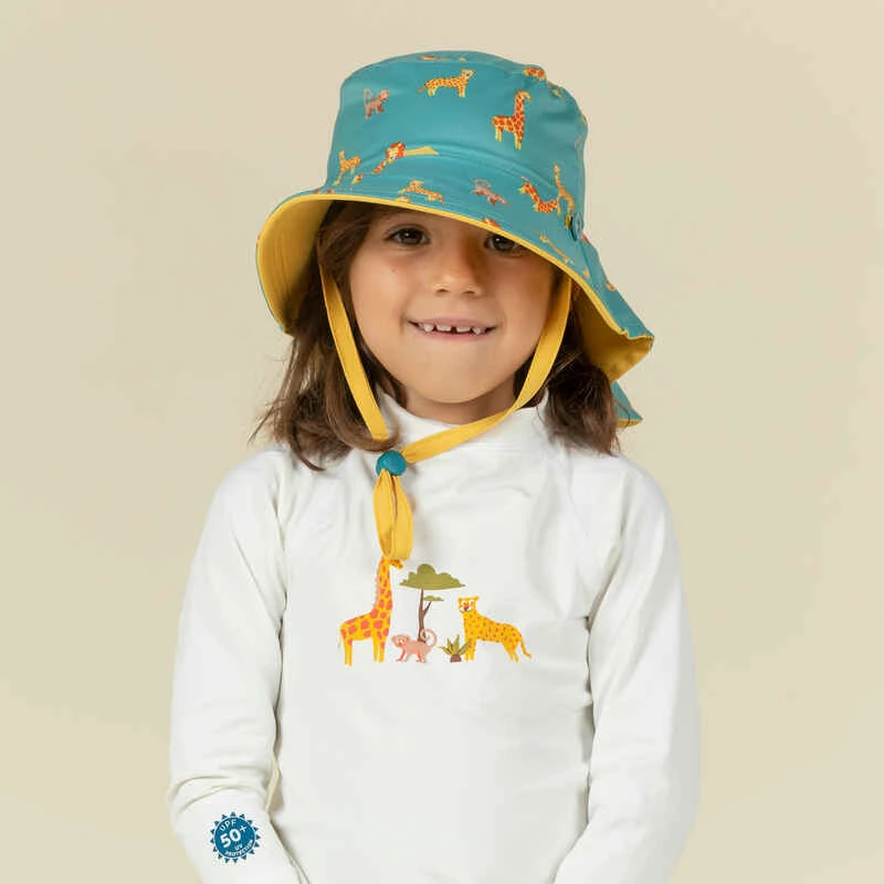 Chapeau Anti UV Bébé Réversible Jaune Et Bleu Imprimé SAVANE