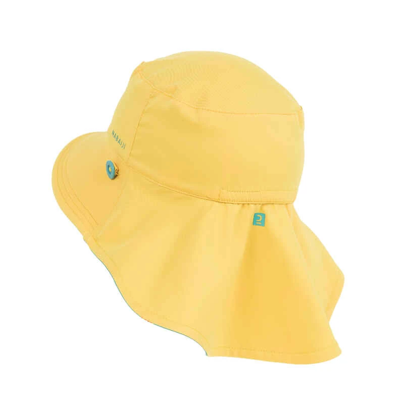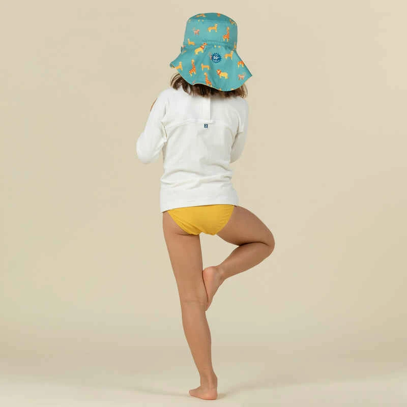 Nos équipes de conception ont crée ce chapeau réversible anti UV pour protéger la tête des bébés /enfants du soleil pendant leurs activités aquatiques
