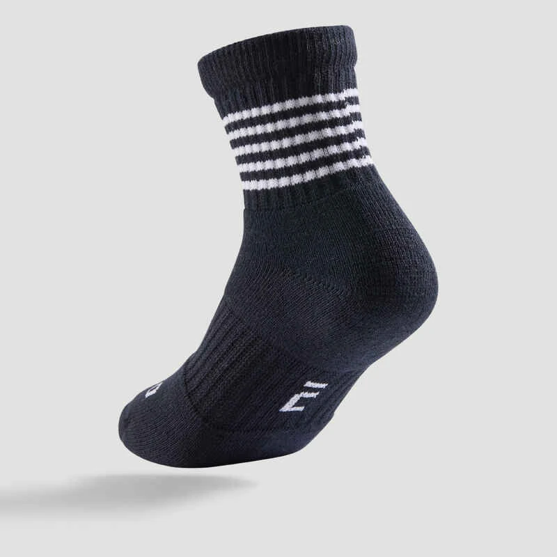CHAUSSETTES DE SPORT ENFANT HAUTES ARTENGO RS 500 MARINE BLANC NOIR LOT DE 3