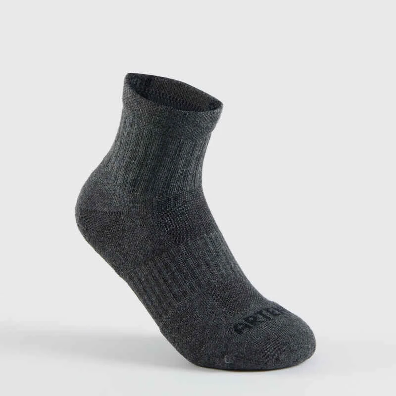 CHAUSSETTES DE SPORT ENFANT MI-HAUTES ARTENGO RS 500 NOIR GRIS LOT DE 3