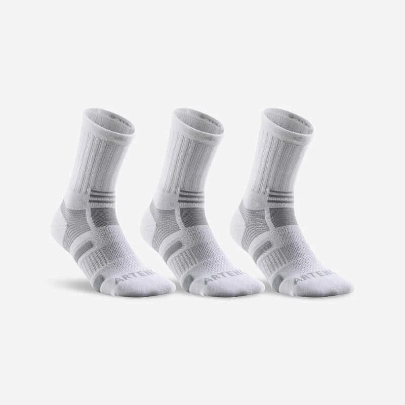 CHAUSSETTES DE SPORT HAUTES ARTENGO RS 560 BLANC GRIS LOT DE 3