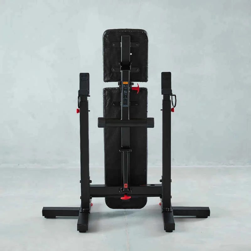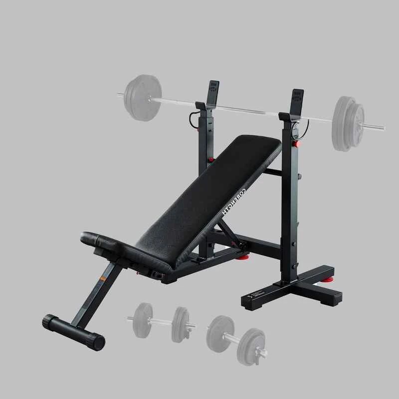 Notre équipe de conception a développé pour vous ce banc pliable avec chandelles intégrées pour la pratique de la musculation avec barre et haltère