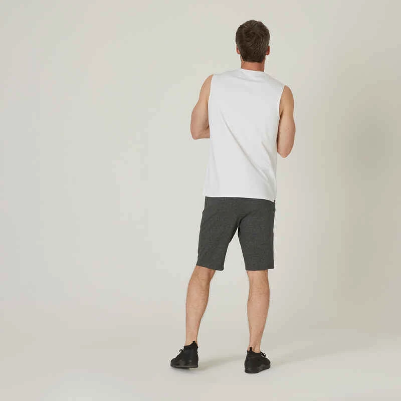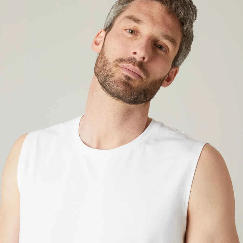 Débardeur Fitness Homme Col Rond Droit Coton – 500 Blanc