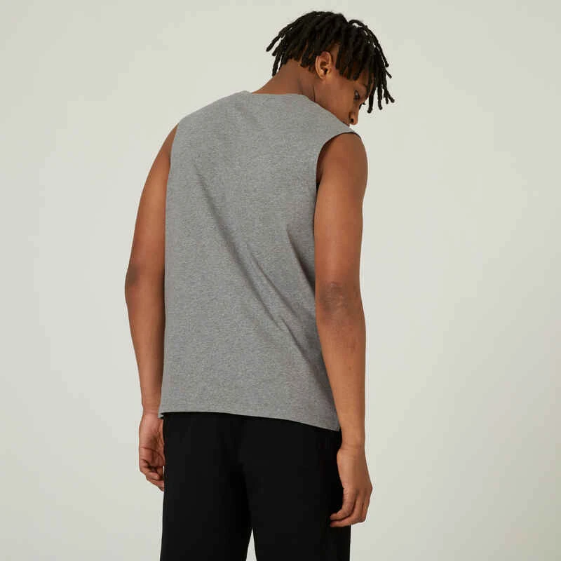 Débardeur Fitness Homme Col Rond Droit Coton – 500 Cosmeto Gris Chiné Extensible