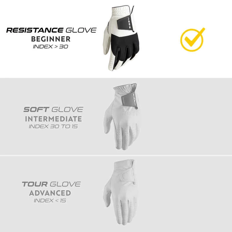 Notre équipe de passionnés de golf a développé ce gant pour vos premiers swings. Il se porte à la main gauche si vous êtes droitier.