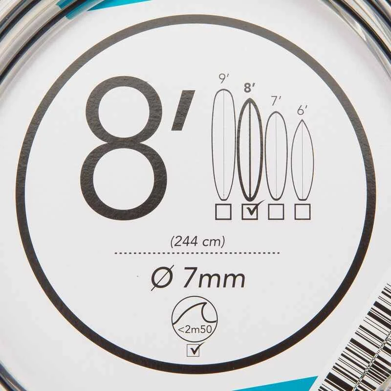 Leash Surf 8′ (240 Cm) Diamètre 7 Mm Noir