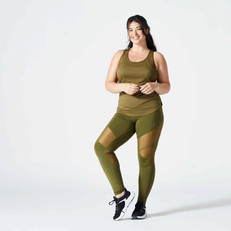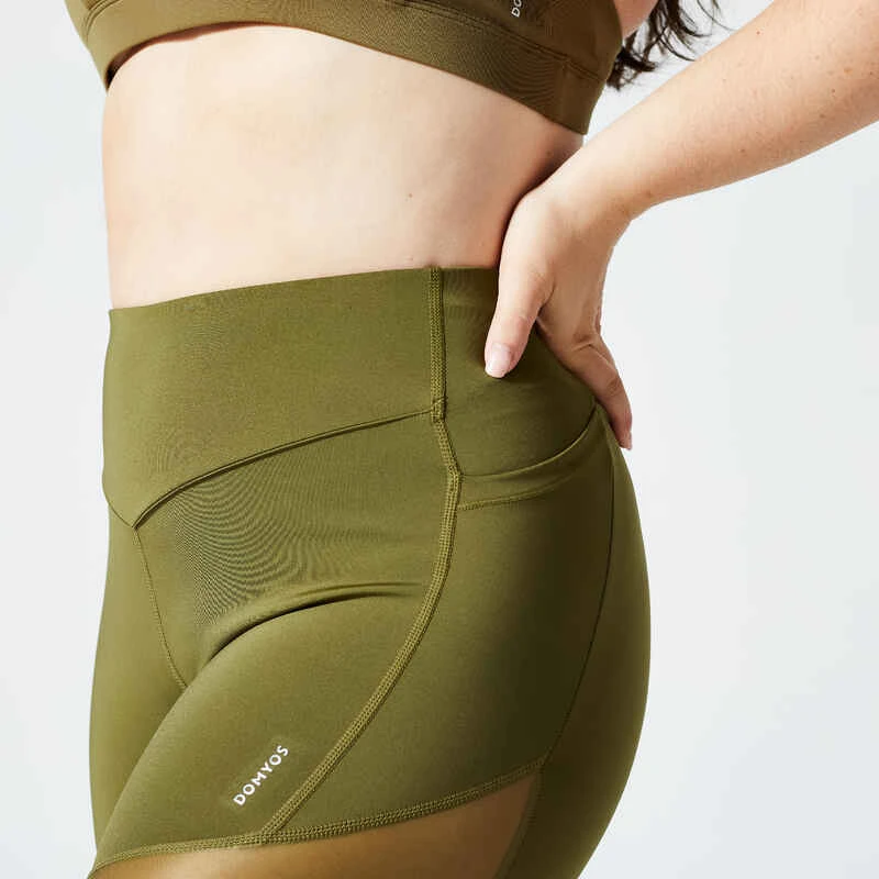 Legging Taille Haute Bimatière Fitness Cardio Femme Kaki
