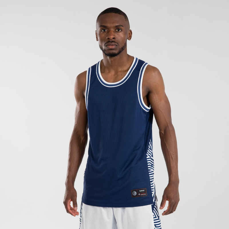 MAILLOT BASKETBALL SANS MANCHE REVERSIBLE HOMME/FEMME – T500R BLANC MARINE USA