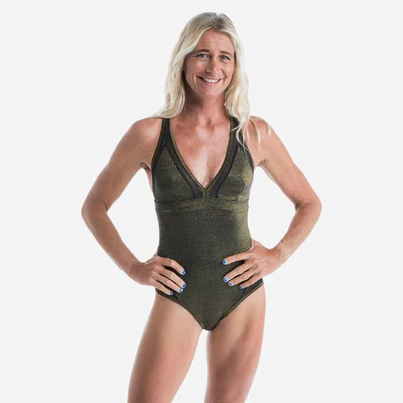 MAILLOT DE BAIN DE SURF 1 PIECE FEMME DOS X ISA PAILLETE NOIR OR