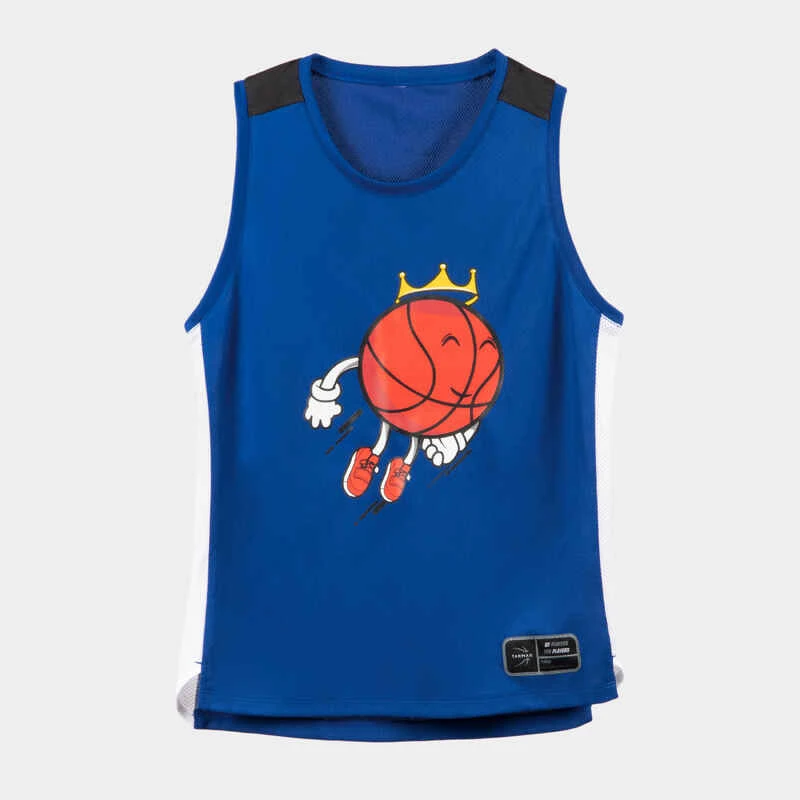 MAILLOT DE BASKETBALL SANS MANCHE ENFANT – T500 BLEU BLANC