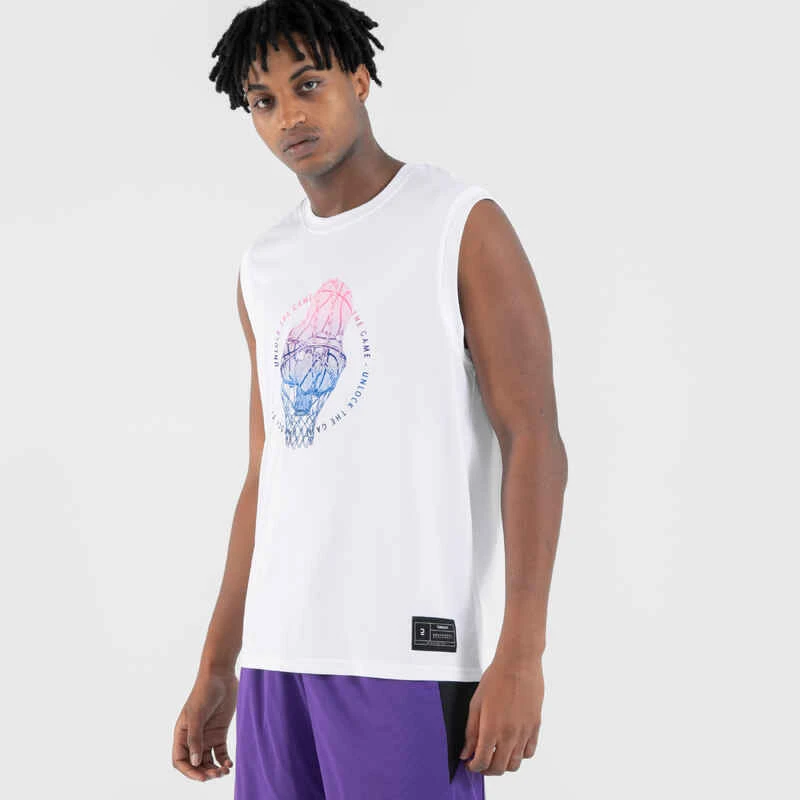 MAILLOT DE BASKETBALL SANS MANCHE HOMME/FEMME – TS500 BLANC