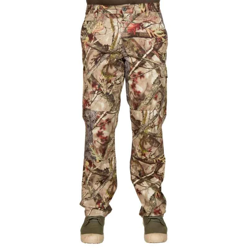 PANTALON CHASSE 100 RESPIRANT SILENCIEUX COTON CAMOUFLAGE FORET