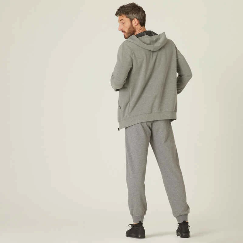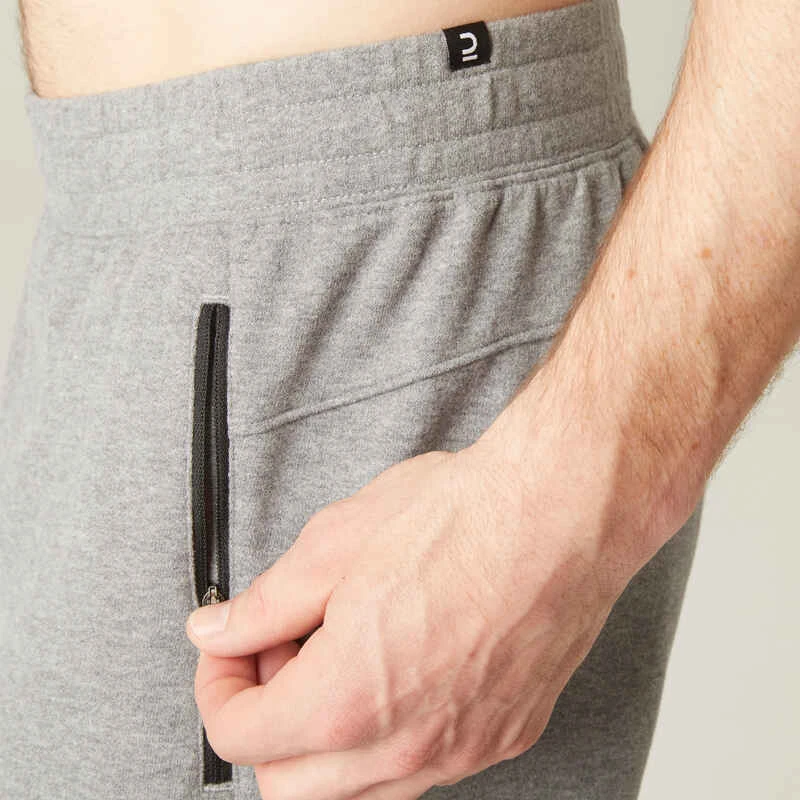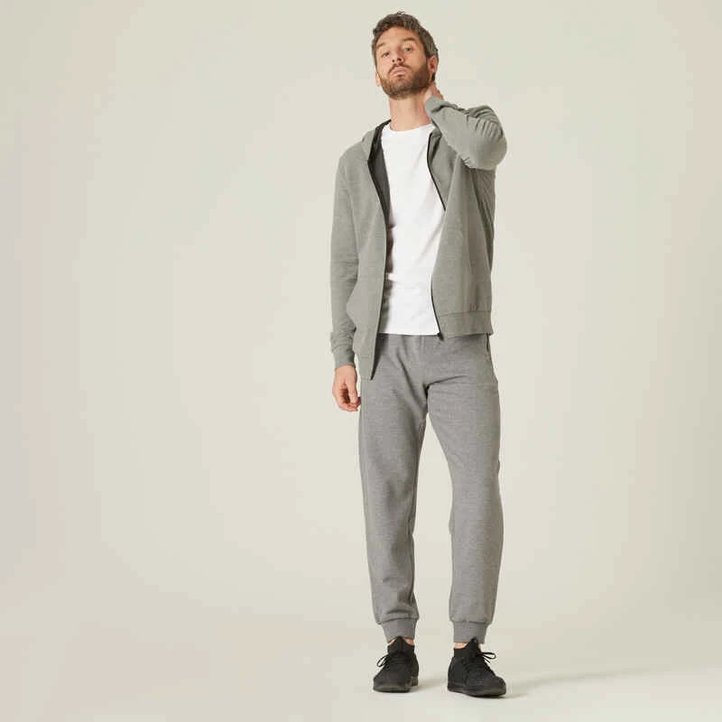Pantalon Jogging Fitness Homme Coton Majoritaire Coupe Droite – 500 Gris