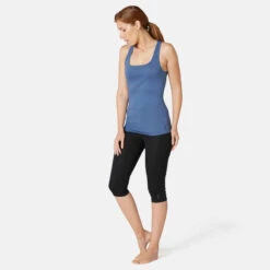 DĂ©bardeur Fitness Femme Dos En X Slim Coton – 500 Bleu D’orage