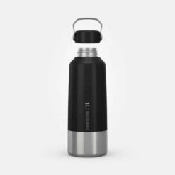 Quechua Gourde Randonnée 500 Bouchon Ouverture Rapide 1,5 Litre Aluminium Noir