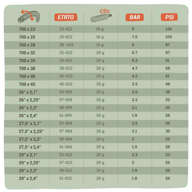 | Puissance | Gonflez jusqu'Ă 3,5 bar / 50 PSI (pneus VTT). |
