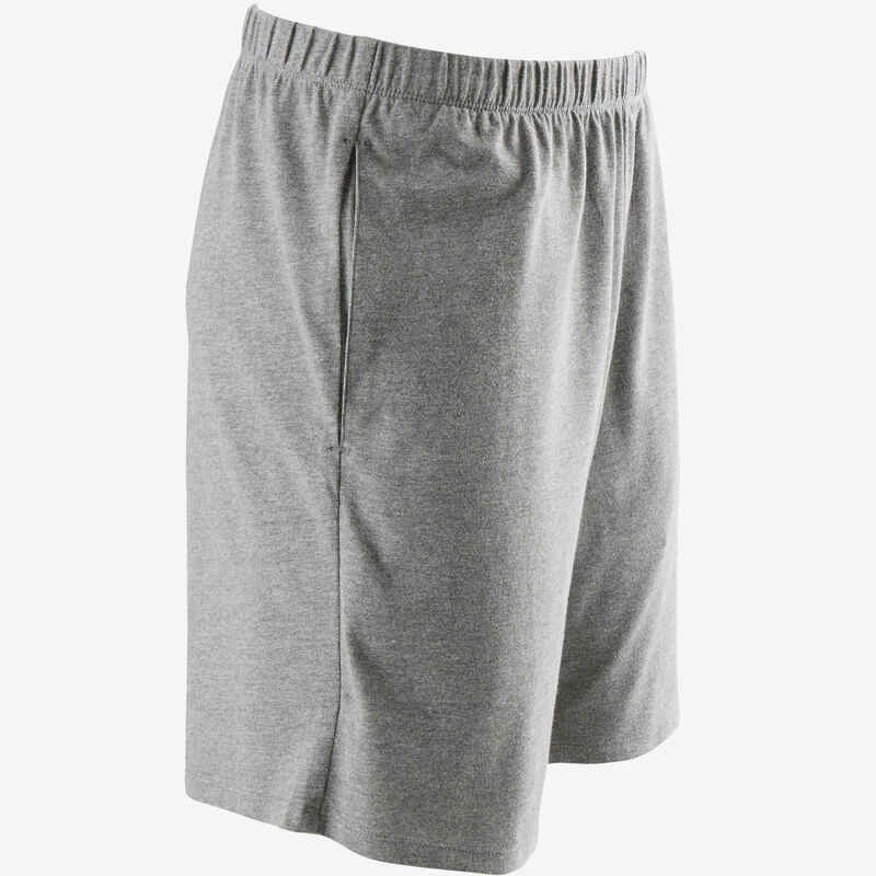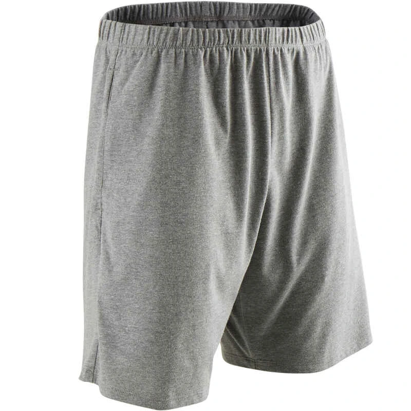Short Fitness Homme Coton Droit Avec Poche Clés – 100 Gris Court
