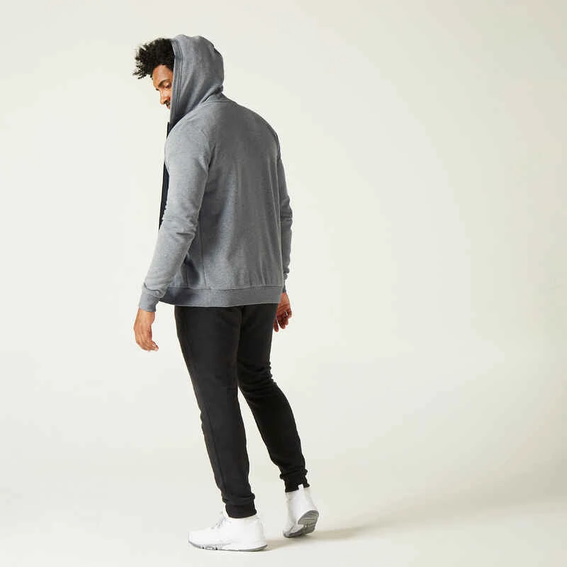 Sweat Zippé à Capuche Fitness Homme – 100 Gris