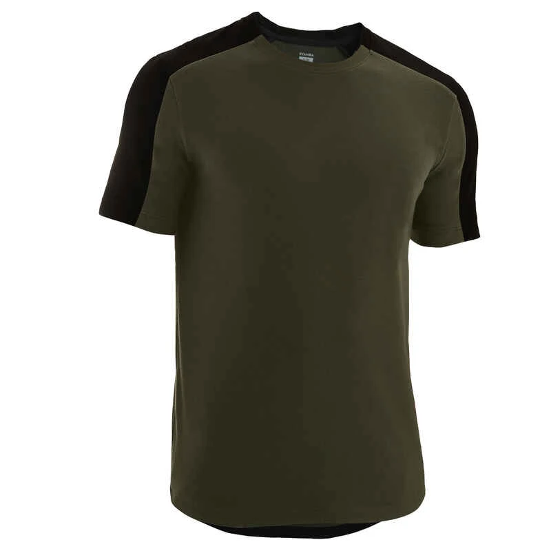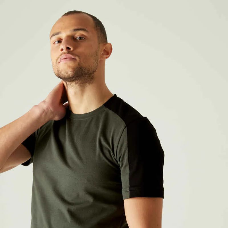 T-Shirt Coton Extensible Fitness Tombé Arrondi Slim Kaki