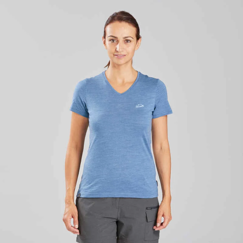 T-shirt De Trek Voyage – Manches Courtes – Laine Mérinos TRAVEL 100 Bleu Femme