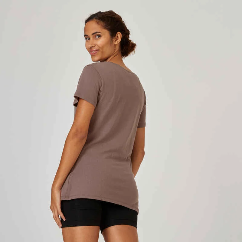 T-shirt Fitness Manches Courtes Col Rond Coton Femme – 500 Gris Foncé