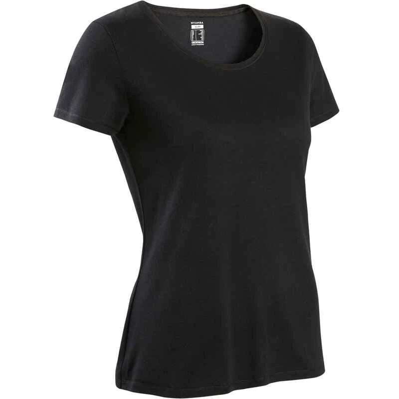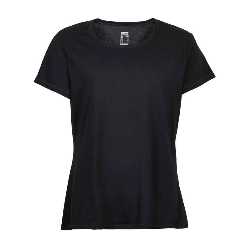 T-shirt Fitness Manches Courtes Droit Coton Extensible Col Rond Femme Noir
