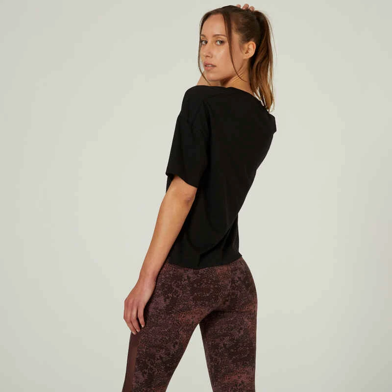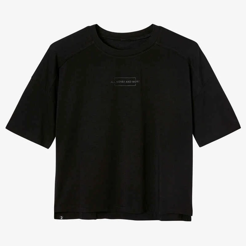 T-shirt Fitness Manches Courtes Large Coton Majoritaire Femme – 520 Noir