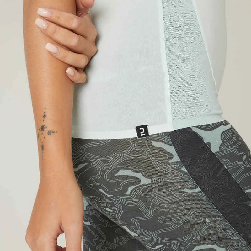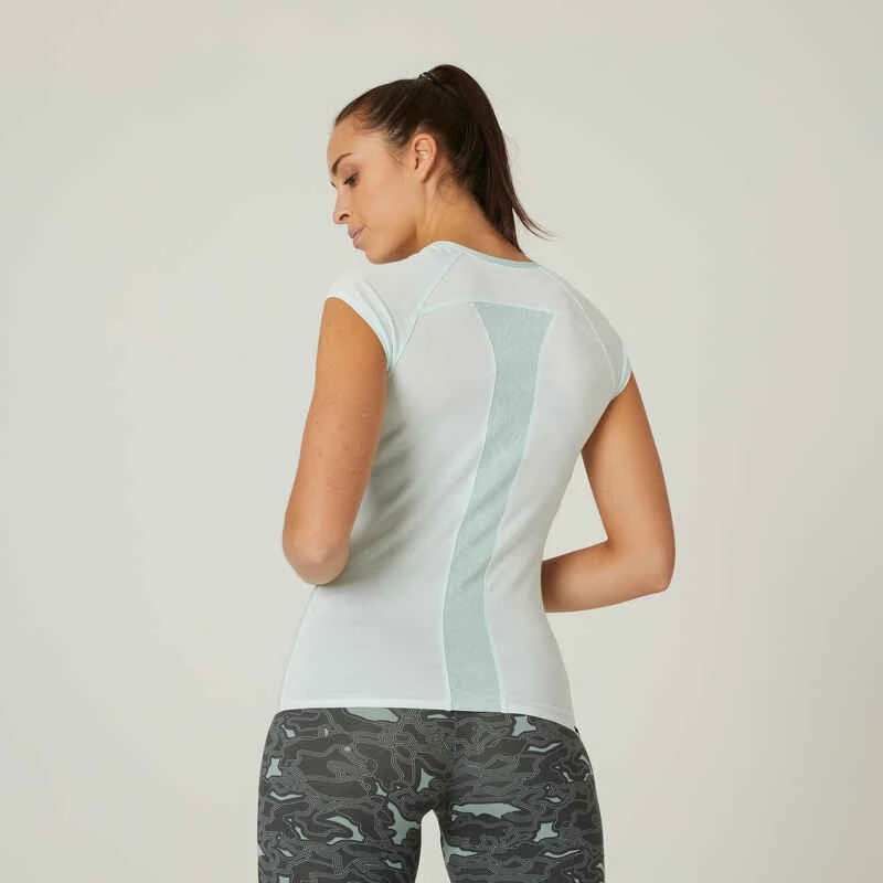 T-shirt Fitness Manches Courtes Slim Coton Extensible Col En V Femme Vert