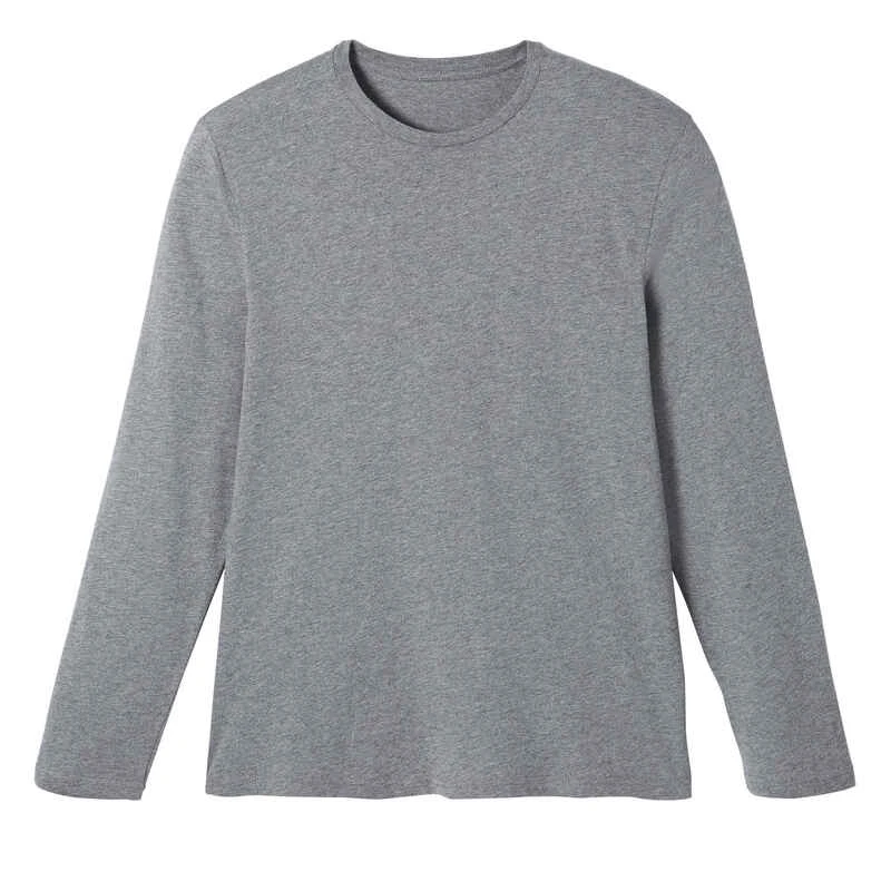 T-shirt Fitness Manches Longues Slim Coton Col Rond Homme Gris Chiné