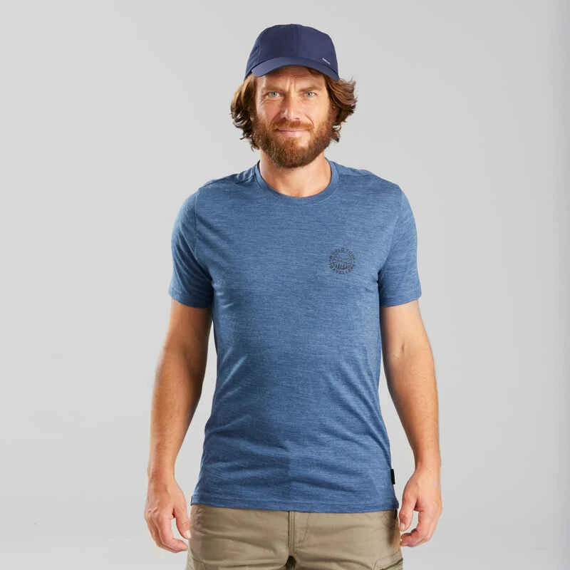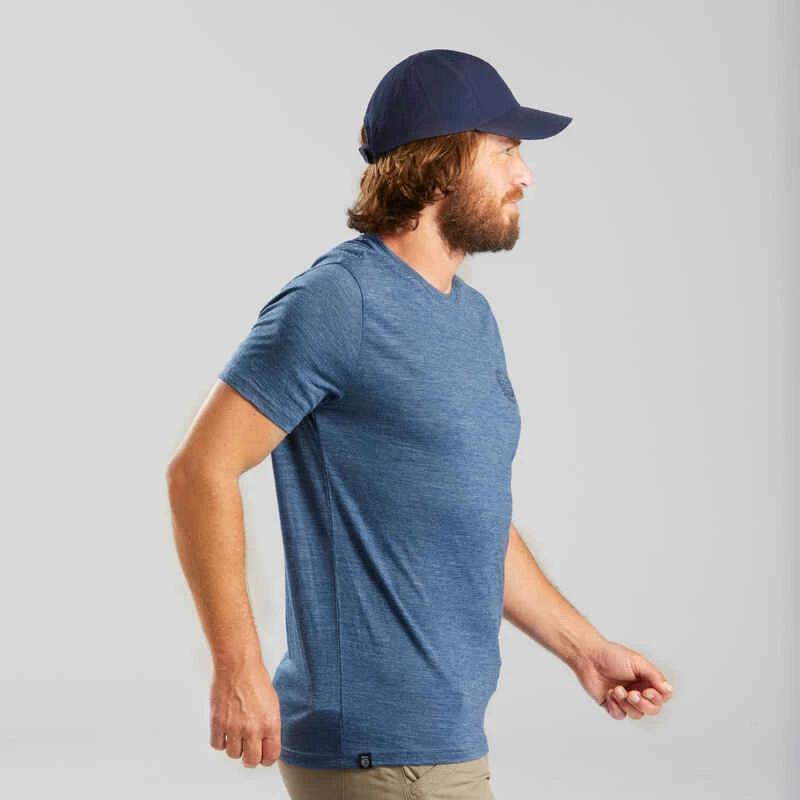 T-shirt Laine Mérinos De Trek Voyage – TRAVEL 100 Bleu Homme