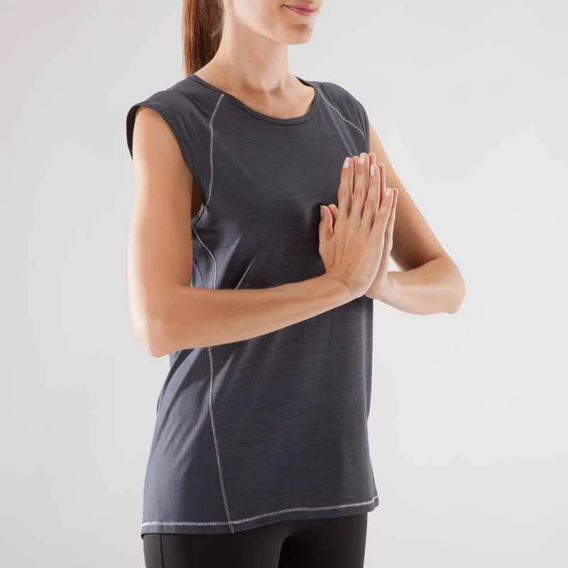 T-Shirt Sans Manches Yoga Femme Noir Chiné