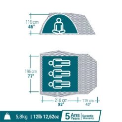 Quechua Tente De Camping – MH100 XL – 3 Places – Fresh & Black