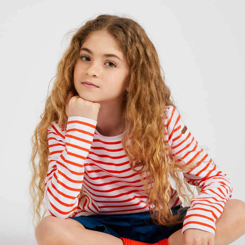 Tribord T-Shirt Manches Longues – Marinière De Voile Sailing 100 Fille Blanc Rouge